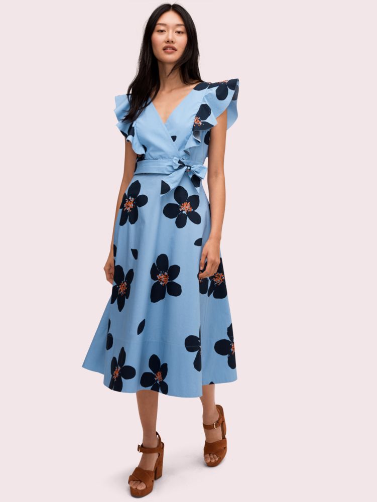 Women S Blue Heron Grand Flora Poplin Midi Dress Kate Spade New York